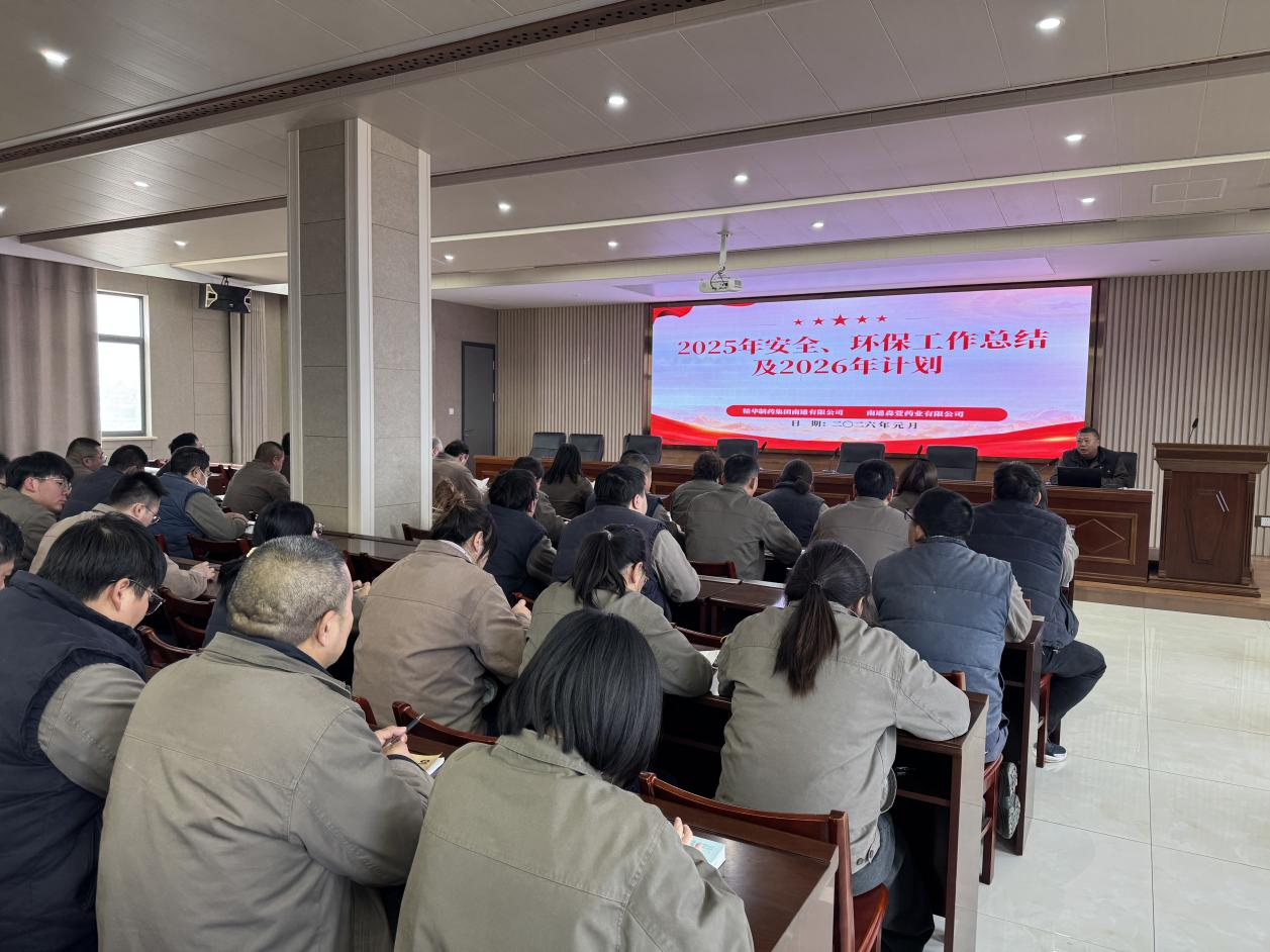 1月8日下午,精華制藥、南通森萱召開2025年度安全環保工作總結暨2026年安全環保工作計劃會議,公司經營層、各部門(車間)負責人、主管及安全員參會。
